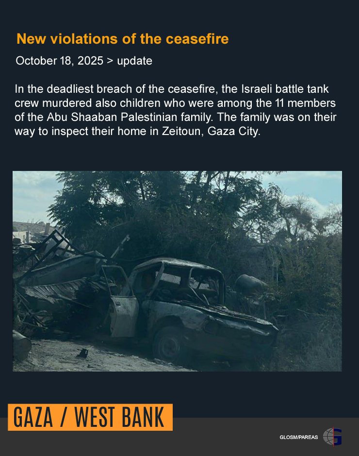 20251018 - Zeitoun, Gaza City - Israeli tank fires on car killing 11 members of the Abu Shaaban family