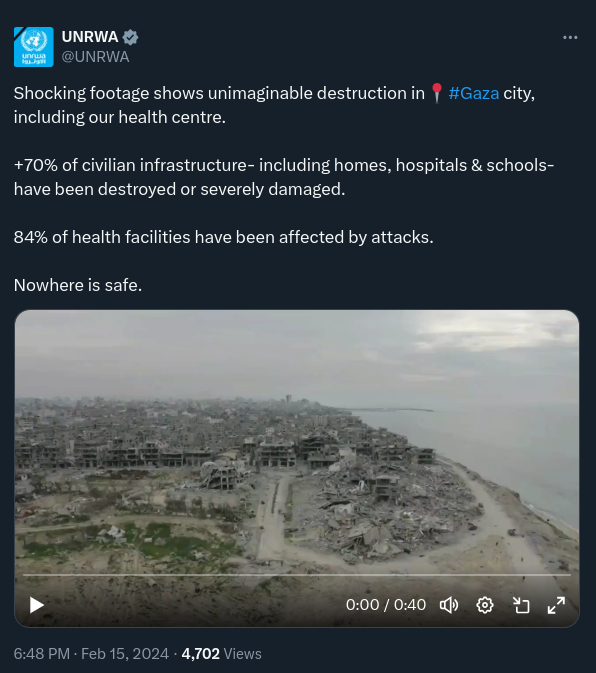20240215 - UNWRA releases video of Gaza City incl. its hospitals
