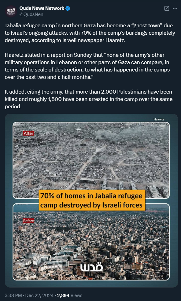 20241222 - news - 70 percent of home in Jabaliyah refugee camp destroyed by Israelis