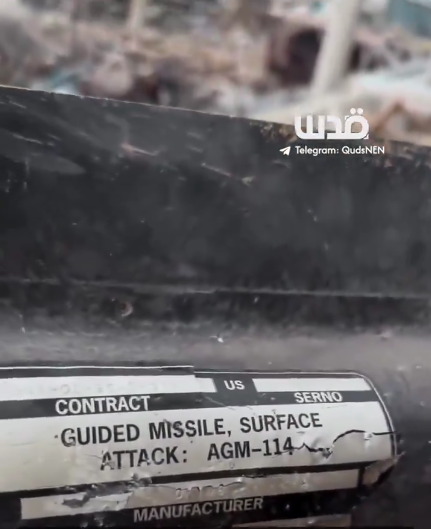 20240606 - Piece of a AGM-114 Hellfire reportedly found that the UNWRA Al-Sardi school (video+photo)