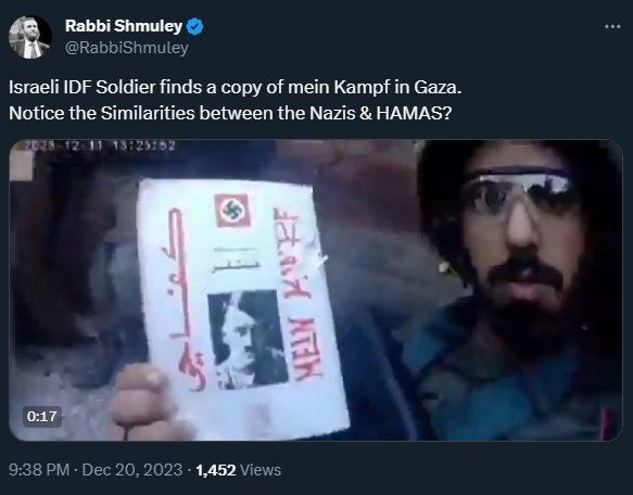 20231220 - American extremist rabbi shares a video showing an Israeli Zionist claiming to have found Mein Kampf (image+video)