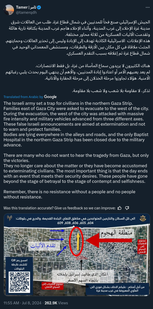 20240710 - Gaza City - Israelis reportedly shooting at people while ordering to leave to a 'safe area'