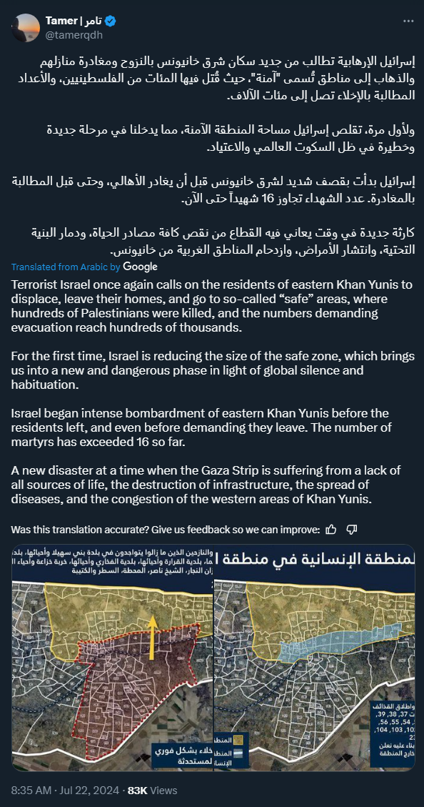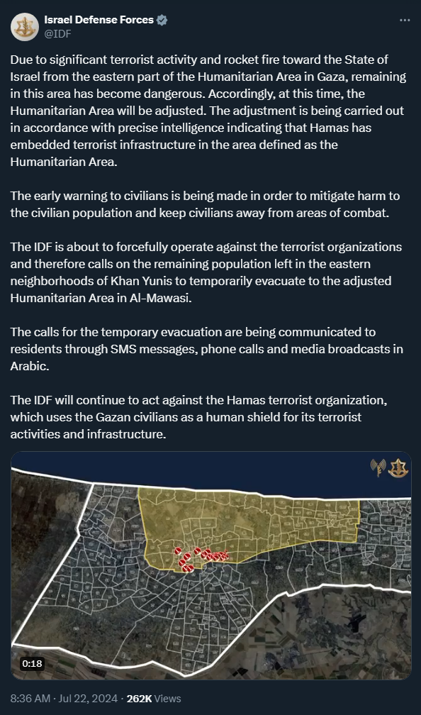 20240722 - Israeli infowar - Israel follows up evacuation order with air strikes on Gaza ‘safe zone’ - IDF claim on X (image+video)