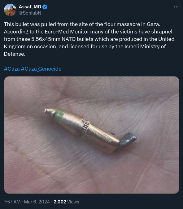 20240306 - flour massacre Harun al-Rashid Street, Gaza City kills 115 people, wounds 700 others - Israeli ammunition found at flour massacre scene