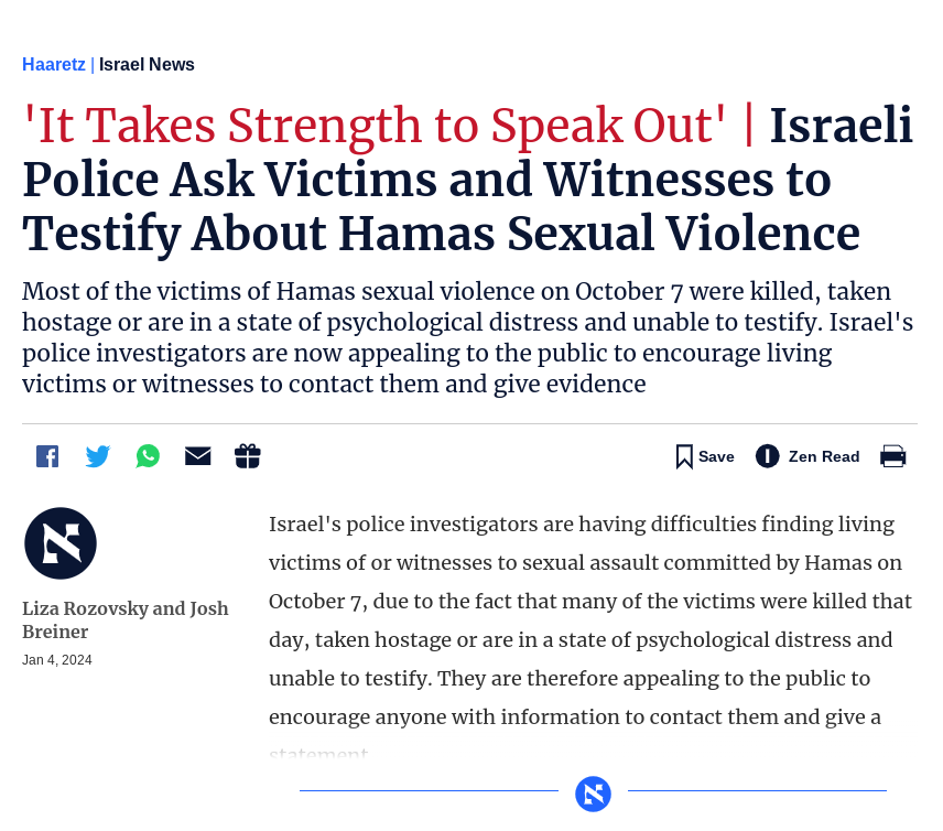 20240104 - news - ‘We Can’t Find Witnesses’ - Israeli Police Contradicts NYT Report on Oct. 7 Sexual Assaults