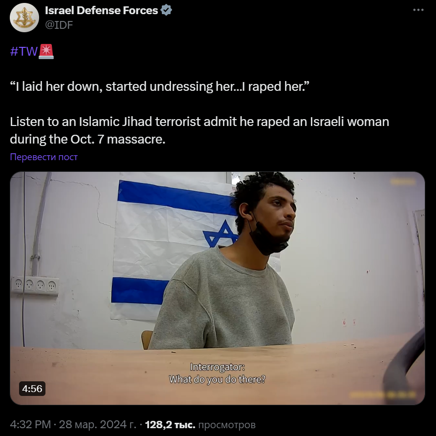 20240328 - IDF X-account in Ukrainian version claims kidnapped Palestinian-s confession (image + video)