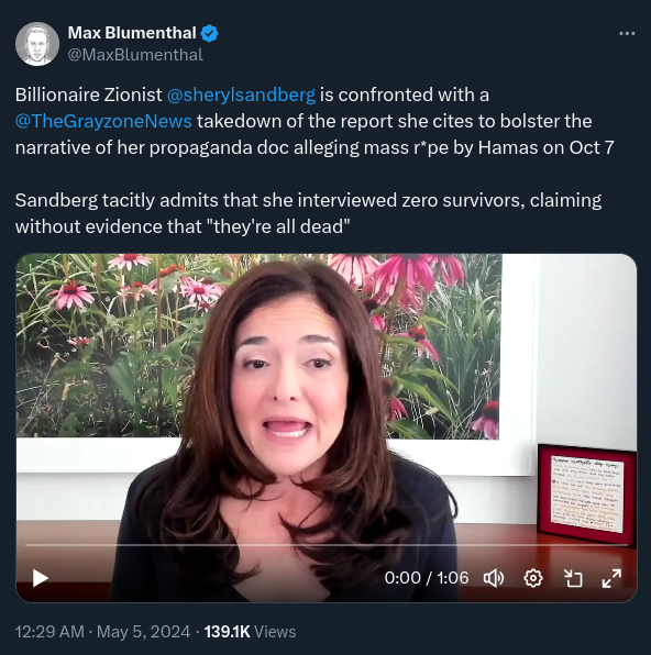20240504 - Zionist Sherlyn Sandberg fabricated a "October 7th documentary" that the Israelis are using for propaganda: Sandberg's documentary" exposed