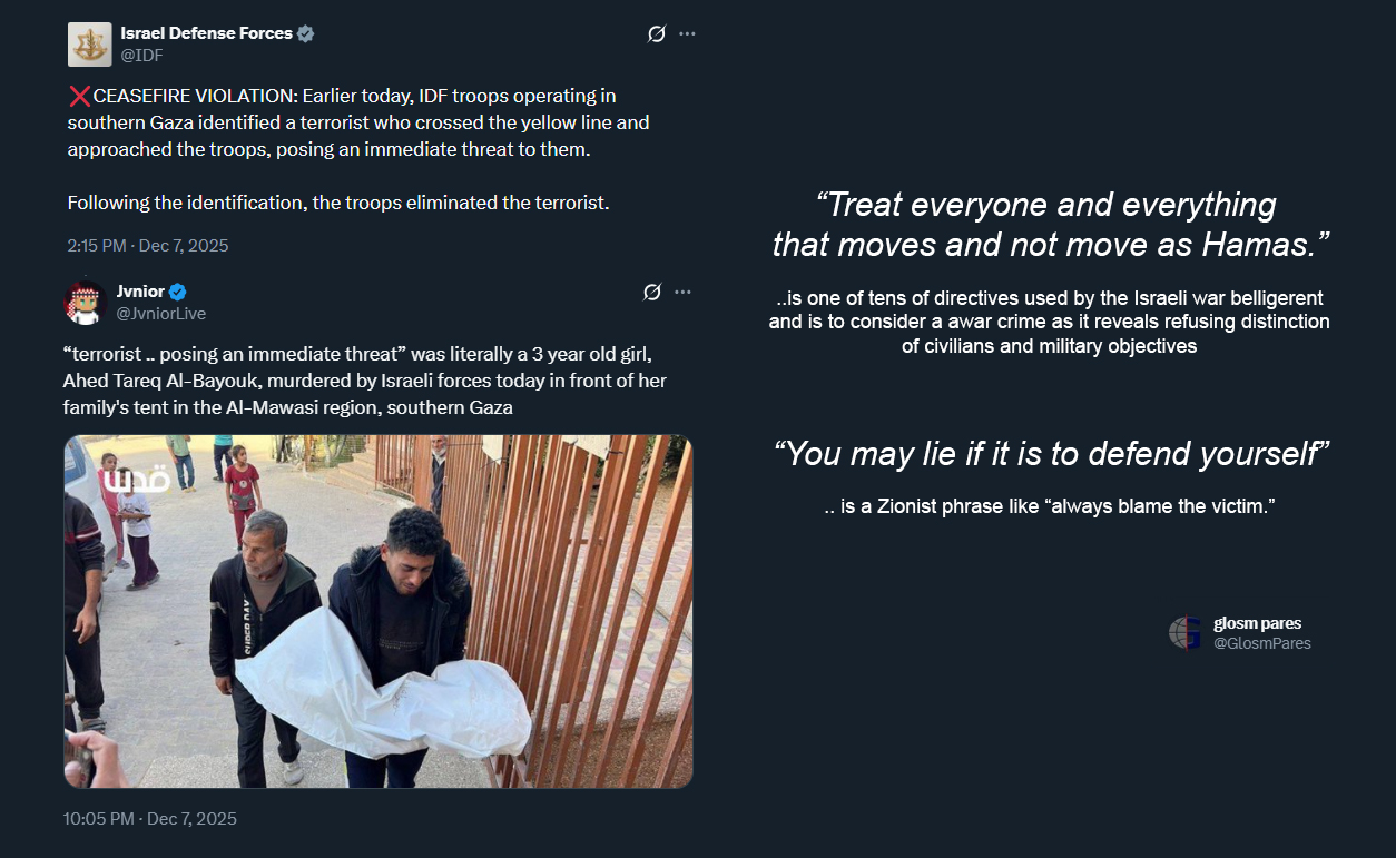 20251207 - Al Mawasi refugee camp, Khan Younis - Israeli propaganda claims 3-year-old girl was a terror threat