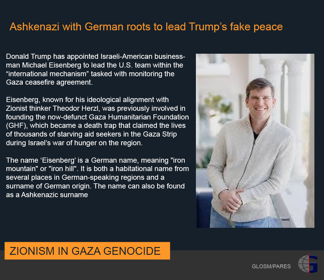 The basis of Trump's "peace" plan was first laid out by the former British prime minister Tony Blair, who already had strong ties with the Israelis when he served as the Middle East Quartet envoy between 2007 and 2015. Trump retreated from his endorsement to replace Blair with Steve Wittkof, a "Jew" of Russian descent. He worked with Trump's son-in-law, the orthodox "Jew", Jared Kushner. Trump is to be suspected of having removed Blair because he is a Catholic.