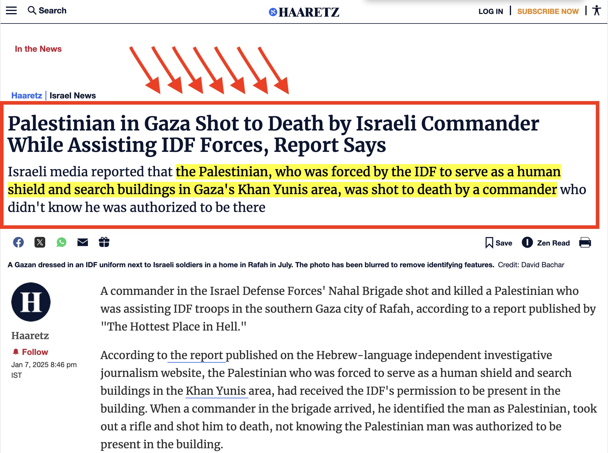 20241228 - news about the photo showing two Palestiians used as human shield